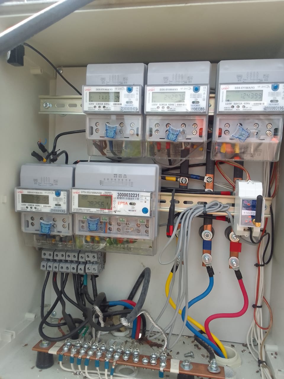 Identificamos transformadores con indicador de perdidas altas, preferiblemente urbano y en zonas comerciales o de difícil gestión. Esta actividad solo es posible realizarla en donde la distribución de la red BT está en cable trenzado, posteriormente se ubica un poste donde convergen varios servicios en punto de conexión de acometidas. Allí, instalamos una caja de derivación, la cual contiene barraje de tensiones, barraje de acometidas, dispositivos de medida o medidores, sensor de tapa y concentrador (comunicador).